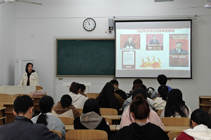 为加强对青年的政治引领,动员引领广大团员青年在强国建设、民族复兴伟业中挺膺担当,11月15-20日,财经学院团委组织各团支部开展主题团日活动,深入学习领会习近平总书记同团中央新一届领导班子成员集体谈话时的重要讲话精神及中国共产主义青年团第十九次全国代表大会精神。财经学院团委书记薛枫指导本次主题团日活动。