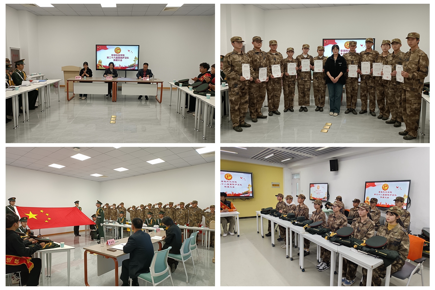 会上,与会老师分别为退役队员、新入职队员颁发了光荣退役证书和新队员聘书并合影留念,宣读了退役队员名单以及聘任校国旗护卫队第28届新成员名单。第28届校国旗护卫队全体队员进行了入队宣誓仪式,即将退役的老队员代表为新入队队员代表授予军装,校国旗护卫队退役队员代表发表退役感言、新入队队员代表发表入队感言、新一届国旗护卫队骨干代表作了履职表态发言。