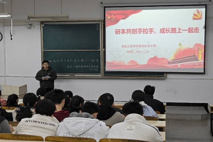 为充分发挥党员主体作用,激发支部活力、增强凝聚力,11月24日、26日晚,食品工程学院研究生党支部先后结合支部特色,与食品质量与安全、烹饪与营养教育(对口)、烹饪与营养教育(专升本)、食品科学与工程23级新生开展“研本共创手拉手 成长路上一起走”系列活动。