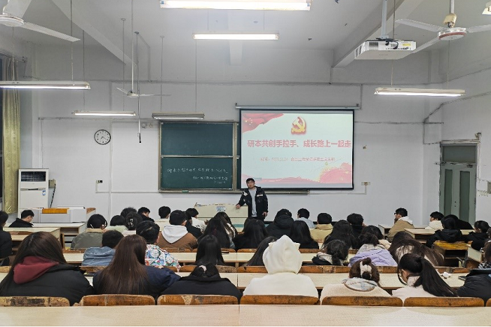 研究生党支部党员结合自身成长经历和科研经历,与新生同学们畅谈本科阶段以及读研以来的收获和感悟,并以专业硕士课题研究为例,从研究背景、研究内容及目标、研究成果、科研经验等多个方面出发,分享了自己的读研生活,拓展了新生同学对专业和学术与科研认知,激发了同学们的学习专业知识的热情。