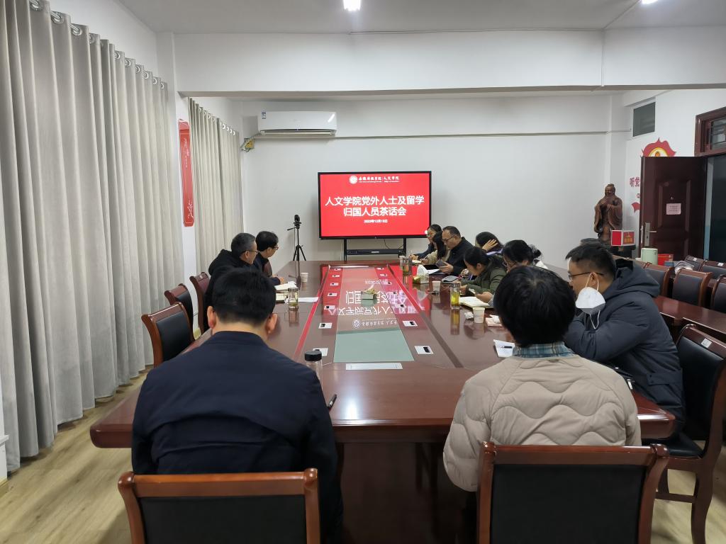 为深入学习贯彻习近平新时代中国特色社会主义思想,团结凝聚党外知识分子和留学归国人员力量,持续推进学院各项重点工作,12月13日下午,人文学院在学知楼324会议室召开党外人士和留学归国人员茶话会。学院党政领导、党外人士和留学归国人员、教工党支部书记、党政办负责人和教学秘书等参加,茶话会由正处级组织员张严政主持。
