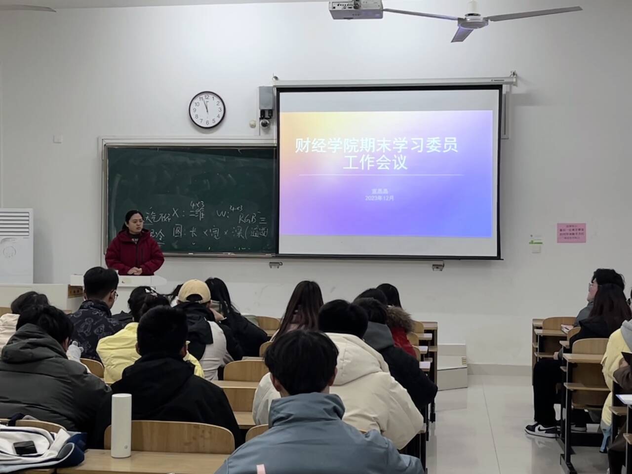 为进一步推进学校“学风建设年”活动方案,营造良好学习氛围,加强教学信息反馈,12月27日中午,财经学院在致知楼C105教室召开期末班级学习委员会议。学院学风工作负责人宣晶晶老师出席,全体学习委员和学习发展部成员参会。