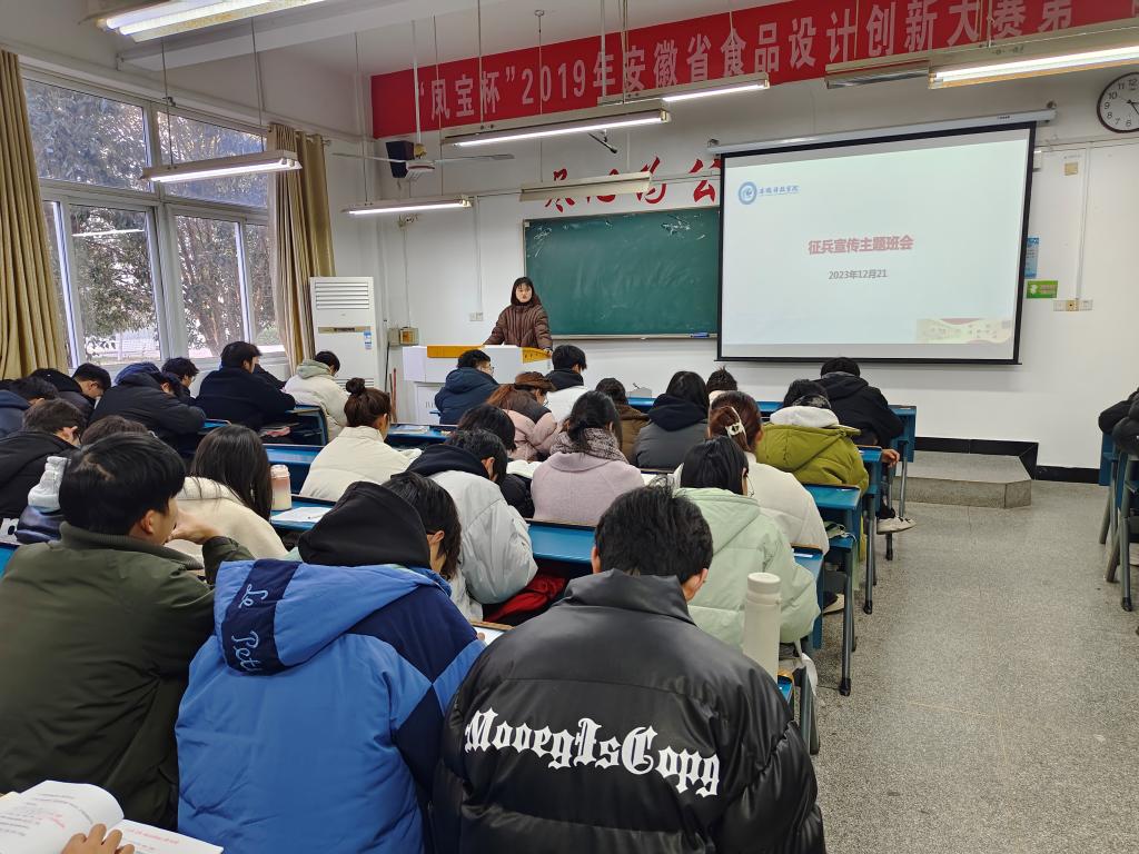 强化宣传,营造氛围。学院征兵工作组召开了2024届毕业生征兵工作推进会,制作了应征入伍政策详解ppt,供各位毕业班辅导员宣传动员使用。学院征兵工作联系人重点从“政策优化、优惠政策、军旅生活、征兵入伍”等四个方面为广大毕业生介绍了2024年大学生应征入伍相关政策,并邀请优秀退役复学大学生分享参军入伍成长经历,使广大毕业生对军旅生活有了较为具体的了解,互动交流解疑答惑。学院还通过专兼职辅导员会议、学生干部会议、主题班会等形式,借助QQ群及易班等平台,进一步加强宣传,进一步提升适龄男性青年大学生参军报国的热情。