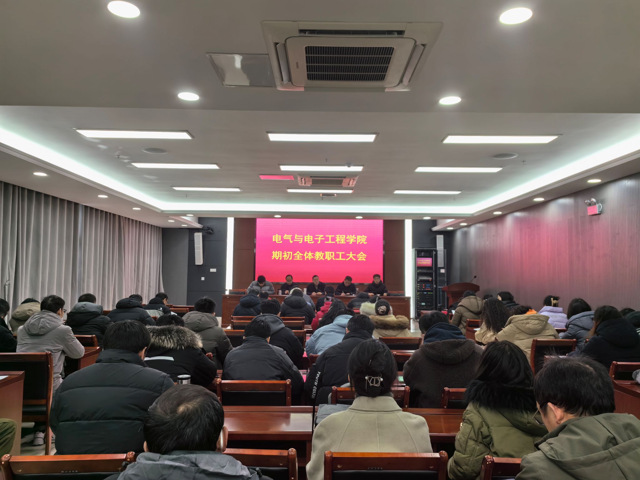 2月25日下午,电气与电子工程学院在西辅楼111会议室召开新学期全体教职工大会,学院党政领导和全体教职工参加了会议,会议由学院党委书记骆海邦主持。