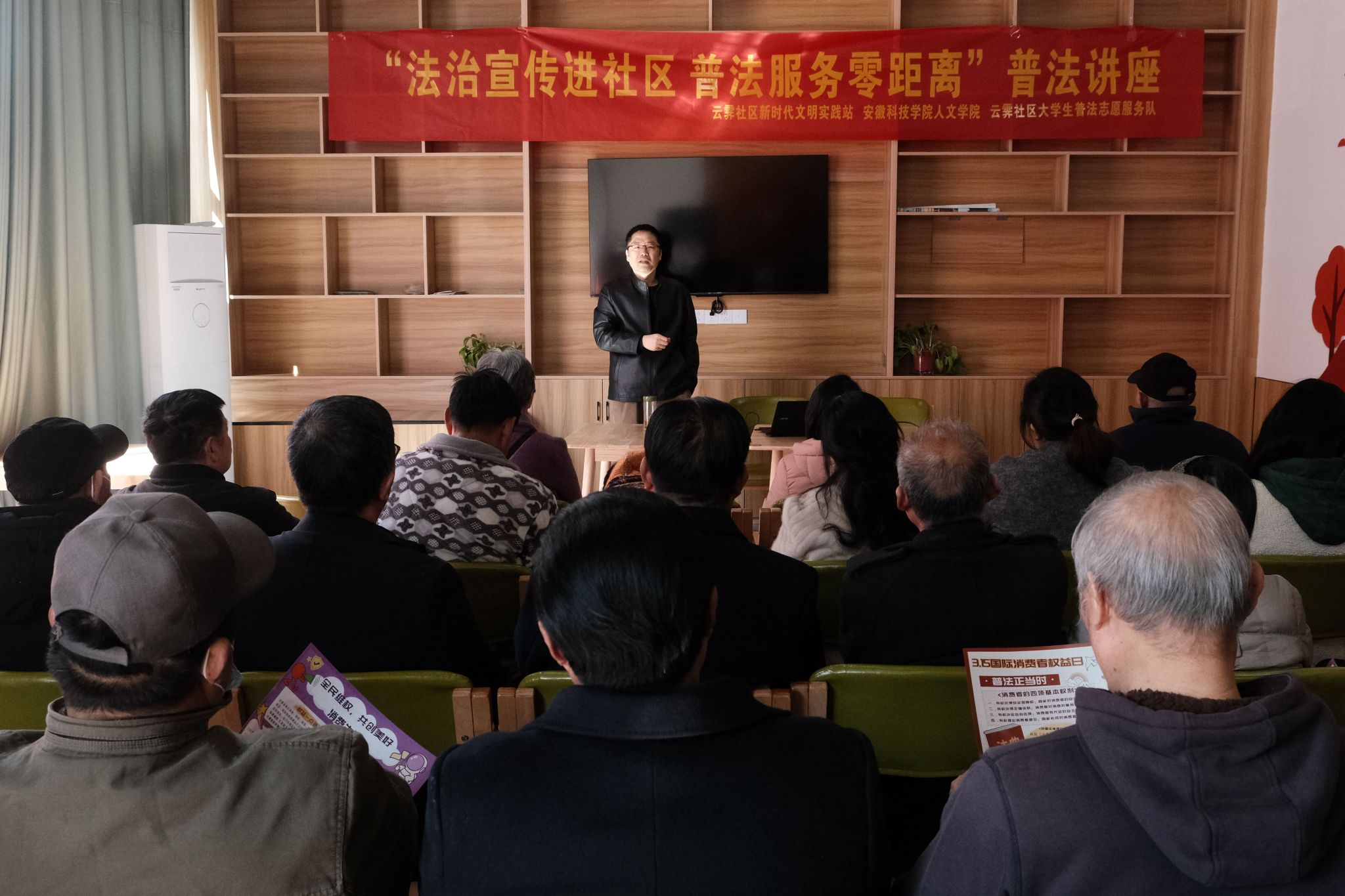 为深入学习宣传贯彻习近平法治思想,践行依法治国理念,增强群众法治意识与维权意识,充分发挥居民社区与高等学校共建法治社会的示范引领作用,3月15日上午,人文学院熠辉学生党员工作室赴凤阳县中都街道云霁社区,开展以“法治宣传进社区,普法服务零距离”为主题的普法宣传进社区活动。人文学院有关教师、云霁社区党支部书记、熠辉学生党员工作室部分成员、社区居民等参加此次活动。