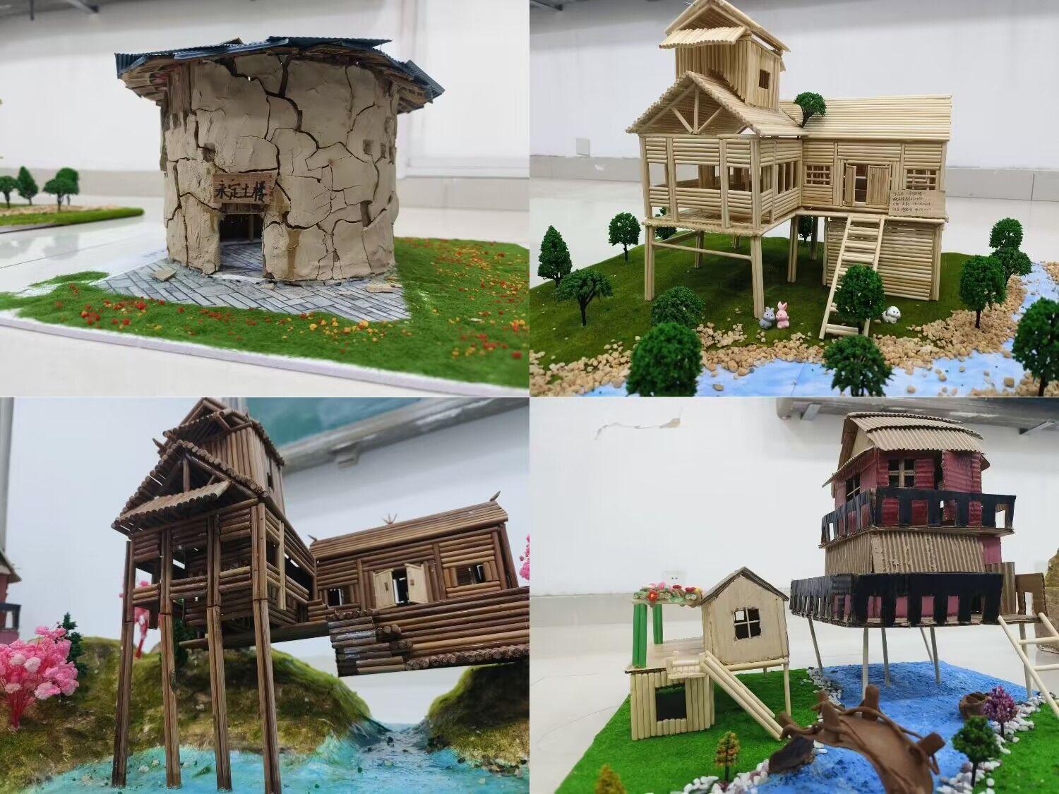 本次建筑模型设计制作大赛以“民族式建筑”为主题。在初赛阶段,共收集作品15份,经线上线下评比,共6支队伍脱颖而出进入决赛。决赛分为选手自主演讲、评委点评与提问两个环境。决赛过程中,各团队以PPT汇报的形式阐述本团队的模型制作理念和制作过程。评委老师从设计理念的新颖性、作品制作的精细度、PPT汇报的流畅度及建筑功能的牢固性等方面对每组作品给出客观评价和综合打分。