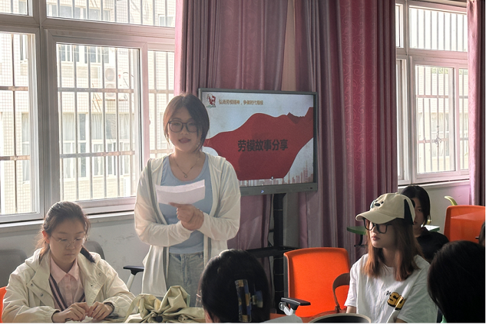 活动包含了“劳模故事分享、发表故事感言、朗诵劳动诗歌”等环节。同学们在生动的故事中感受劳动的魅力,在激昂的诗歌中体味劳动者无私奉献、默默无闻的优良品质。其中,周欢同学分享的劳模申纪兰的事迹引发了在场同学的热烈讨论,大家纷纷表示要向申纪兰学习,坚定不服输的人生信仰,践行不怕苦的担当精神,在新时代新征程上主动作为、奋发有为、担当善为,扛起时代使命,追逐伟大梦想。