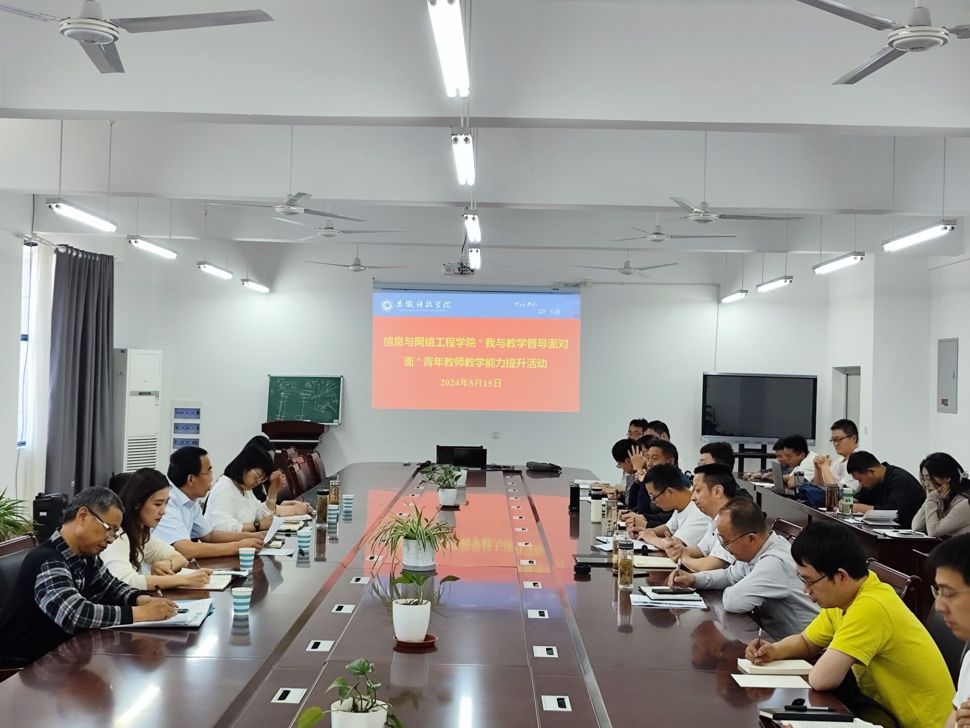 为了进一步提升青年教师的业务水平和能力素质,专注解决教学过程中遇到的实际问题,促进教学质量全面提升,5月15日下午,督导考核办公室联合信息与网络工程学院在龙湖校区尚行楼B418开展了“我与督导面对面”青年教师教学能力提升活动。督导考核办公室工作人员、信息与网络工程学院党政领导、校级教学督导以及近5年入职的40岁以下青年教师参加了会议。会议由副院长曹浩主持。