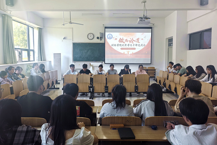 为进一步提高学院学生干部综合素质,增强其责任意识和服务本领,充分发挥典型引领和示范作用,财经学院于5月15日下午在龙湖校区致知楼C108教室举办学生干部培训班之“做而论道”优秀学生干部交流会。学院2023级各班班长、团支书、学习委员参加。交流会由学院团委书记薛枫主持。