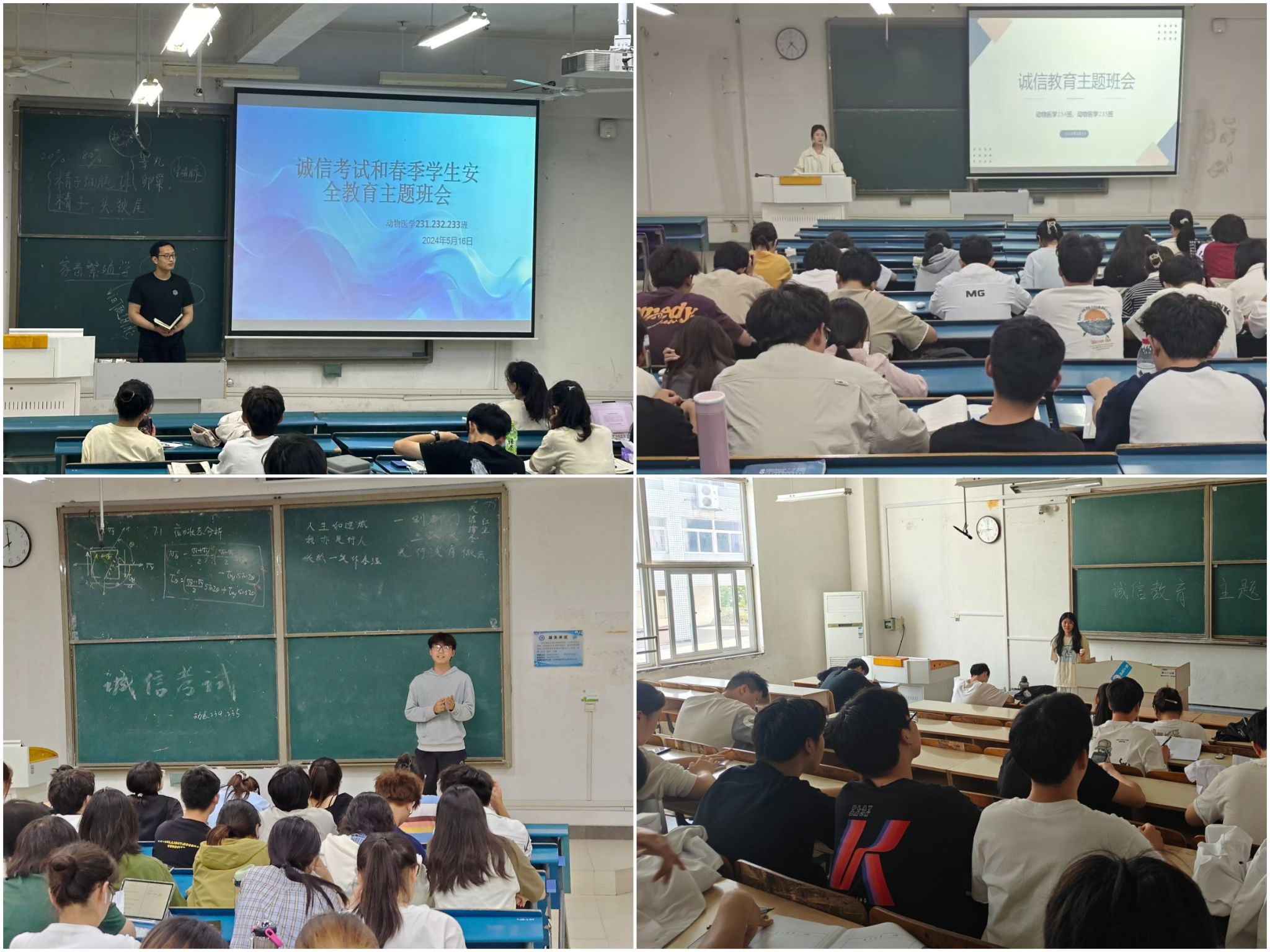 树道德之新风,立诚信之根本,是当代大学生义不容辞的责任。为严肃考风考纪,端正学生考试态度,增强同学们诚信文明意识,5月中旬,动物科学学院在全院范围内陆续开展诚信考试主题班会,会议由各班辅导员及学习委员主持。