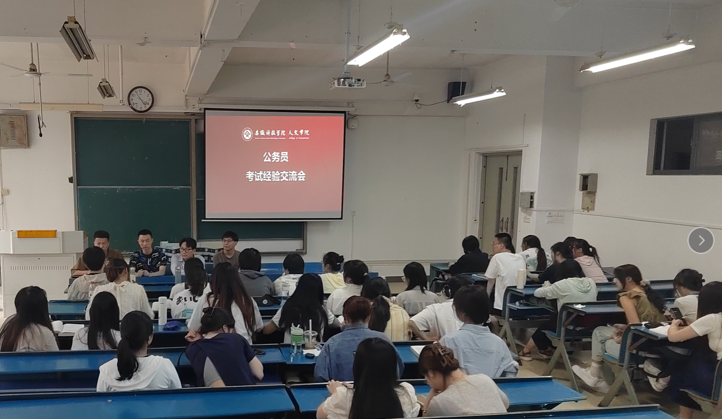 为帮助在校学生深入了解公务员考试政策及备考策略等,提高学生就业能力,助力毕业生高质量就业,5月21日,人文学院在新知楼A106教室举办公务员考试经验交流会,邀请人文学院2020级参加公务员考试的毕业生代表为学弟学妹们分享交流公务员考试经验,法学2021级全体同学参加。