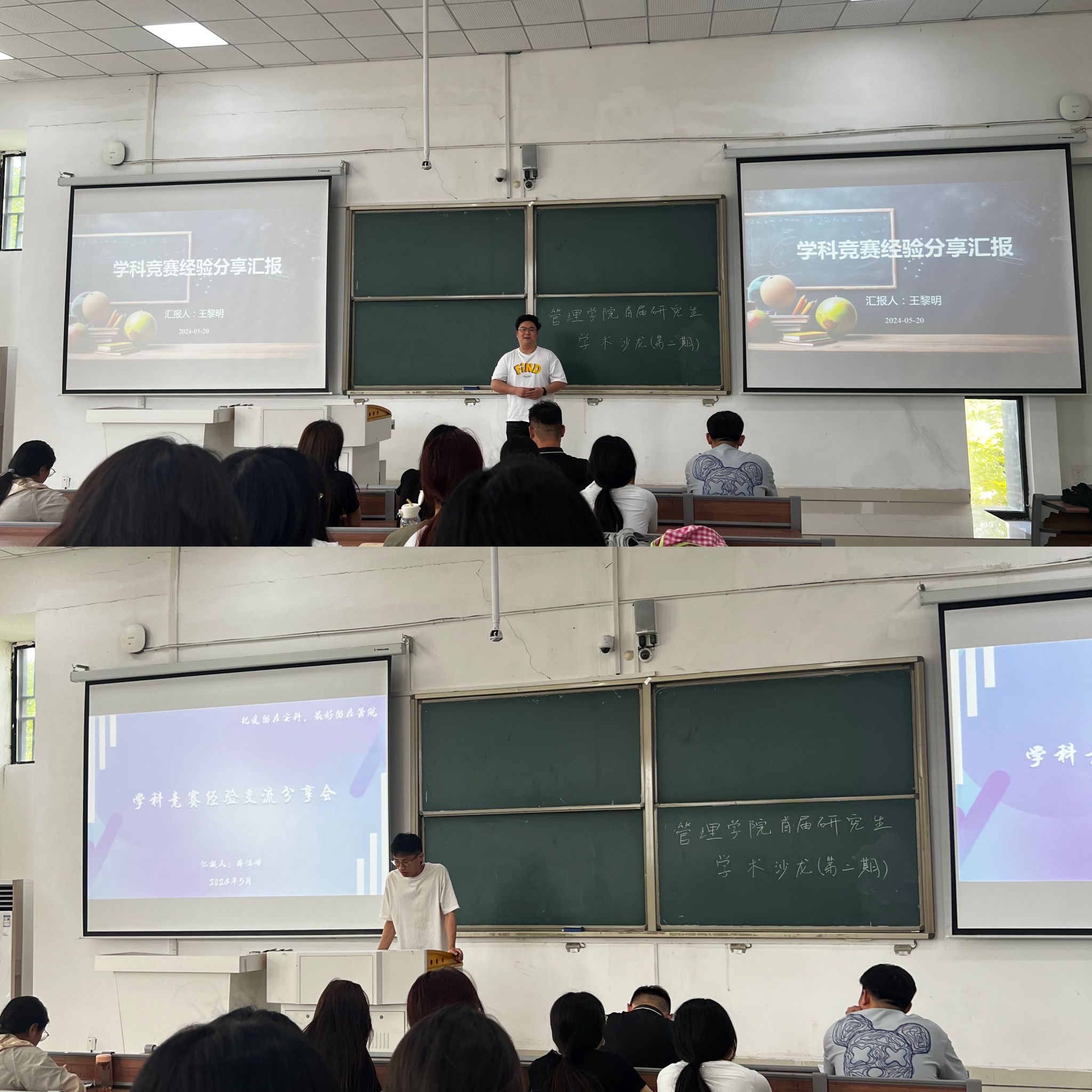 为进一步激发研究生学术热情,提高研究生学科竞赛的积极性和参与度,5月20日下午,管理学院在致知楼B111举办了研究生学科竞赛经验分享会。本期活动邀请了2022级农业管理专业的王黎明和2023级农业管理专业的薛满峰两位同学,分享他们在学科竞赛中的经验与心得,2023级全体研究生参加分享会。