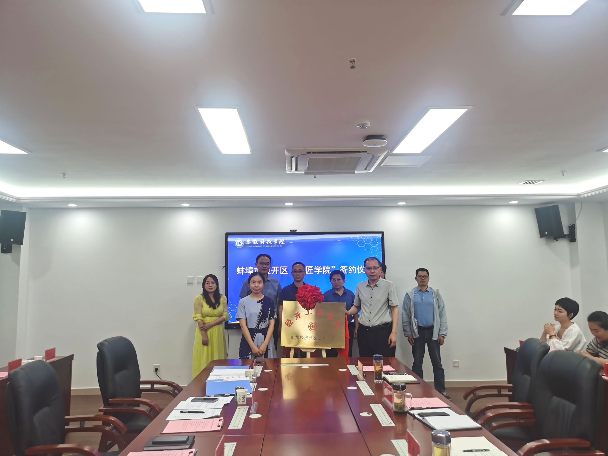 为充分利用高校科技与人才优势,精准对接地方经济社会发展需求,推动产学研用深度融合。5月24日上午,管理学院与蚌埠市经开区总工会联合举办的“经开工匠学院”签约揭牌仪式在我校龙湖校区西辅楼416会议室如期举行。蚌埠市经开区二级调研员张鹏远、经开区总工会副主席李秀丽、经开区团委书记兼投资促进局副局长王奎、经开区社会事业局副局长唐娇娇、经开区部分企事业单位工会主席、劳模工匠代表及管理学院党政领导和师生代表共同出席了签约揭牌仪式。仪式由唐娇娇主持。