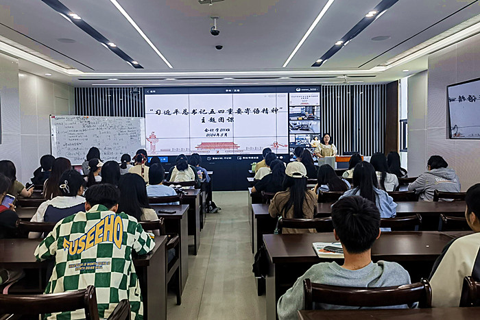 各团支部通过主题团课、主题团日、座谈交流、网上学习等方式展开学习讨论,并结合青年榜样的先进事迹,畅谈了如何进一步弘扬五四精神,坚定不移听党话、跟党走,争做有理想、敢担当、能吃苦、肯奋斗的新时代好青年。来自会计学237班学生汪俊琪分享到:“105年前,一批爱国青年挺身而出,誓言‘国土不可断送,人民不可低头’。爱国主义自古以来就流淌在中国青年的血脉之中。我们有幸生在国家富强、民族昌盛的新时代,我们对祖国最深切的热爱、对时代最好的回馈就是深入学习贯彻习近平新时代中国特色社会主义思想,积极将个人命运与国家民族的命运紧密相连,努力成长为具有全球视野、能力过硬、善作敢为、‘知世界,懂中国’的时代青年,为中华民族伟大复兴贡献自己的力量。”