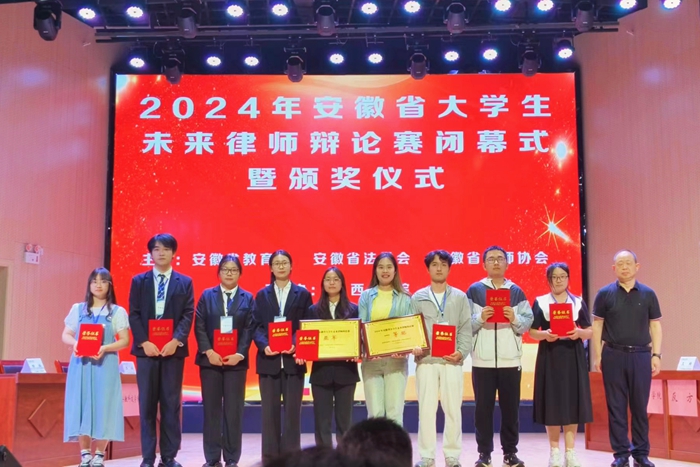 5月24日至26日,2024年安徽省大学生未来律师辩论赛在皖西学院举行。本次赛事由安徽省教育厅、安徽省法学会、安徽省律师协会主办,皖西学院承办。全省21所高校法学专业本科生代表队参赛,我校代表队取得本场赛事亚军,荣获一等奖。