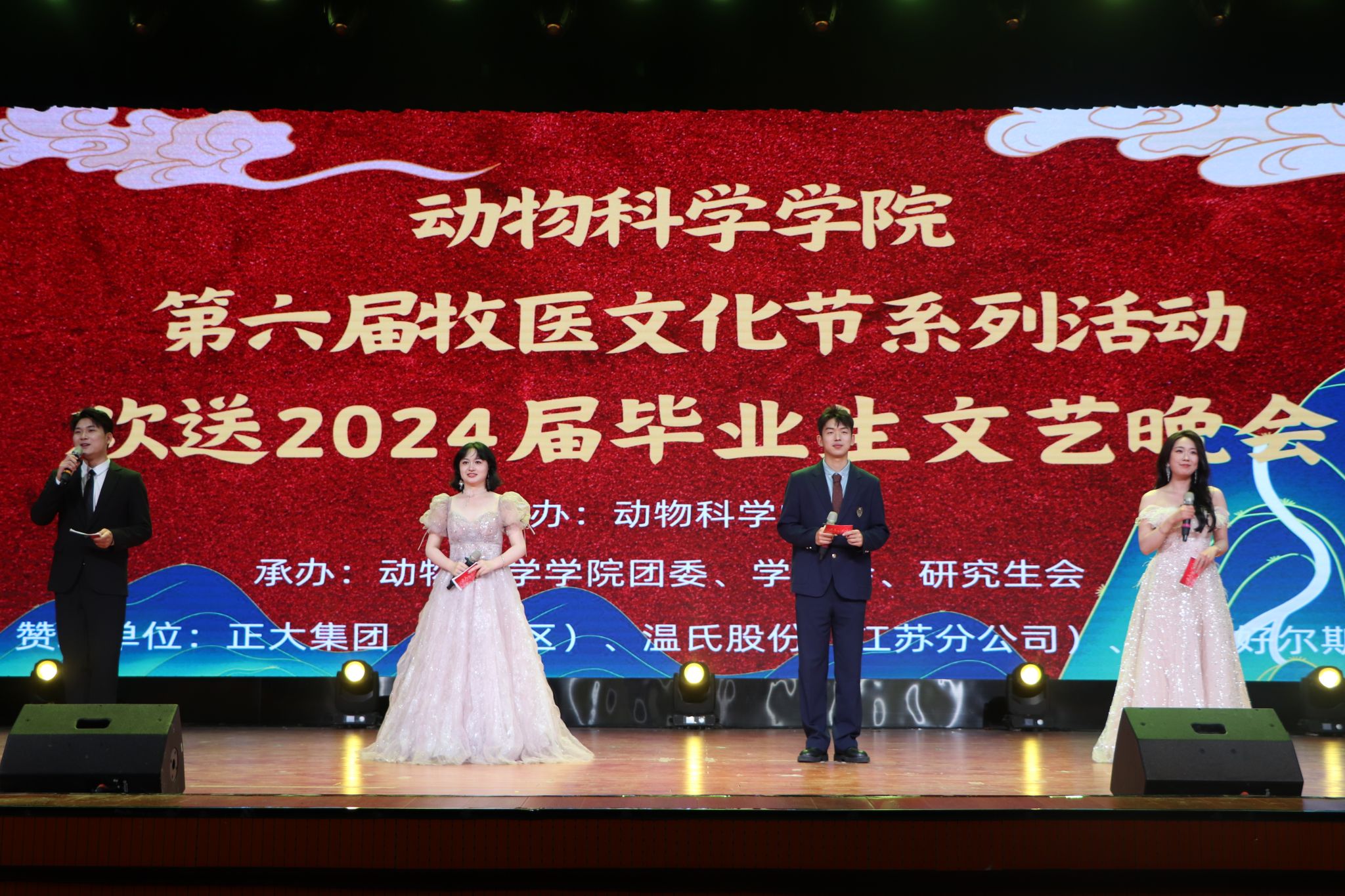 青春不散场,未来犹可期。6月2日晚,动物科学学院第六届牧医文化节系列活动之欢送2024届毕业生文艺晚会在大学生活动中心隆重举行,学院党政领导和有关教师出席,2024届全体毕业生、非毕业班学生代表共计400多名师生欢聚一堂,共同度过了难忘的夜晚。晚会得到正大集团安徽区公司、安徽好尔斯农业科技股份有限公司和温氏集团江苏分公司赞助支持。