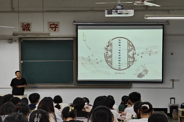 6月12日下午,外国语学院在求知楼A座201教室开展2024年青马工程暨学生骨干培训班第三讲。食品工程学院团委副书记吴玘担任主讲。