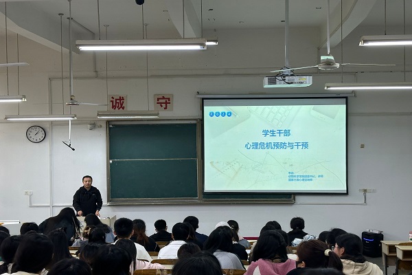 李焱以“学生干部心理危机预防与干预”为题,从学生干部心理危机的源头、表现和原因分析、调适方法、预防和干预四个方面进行讲解。他指出,学生干部因学习压力、工作压力、人际关系、角色冲突等方面会出现心理问题,甚至出现较为严重的心理危机,找到合适的调节方法进而开展有效预防和干预至关重要。他以具体实例展示了心理调节的有效方式。学生干部积极参与师生互动,整场报告理论联系实际,形式活泼灵动,受到学生干部的一致好评。