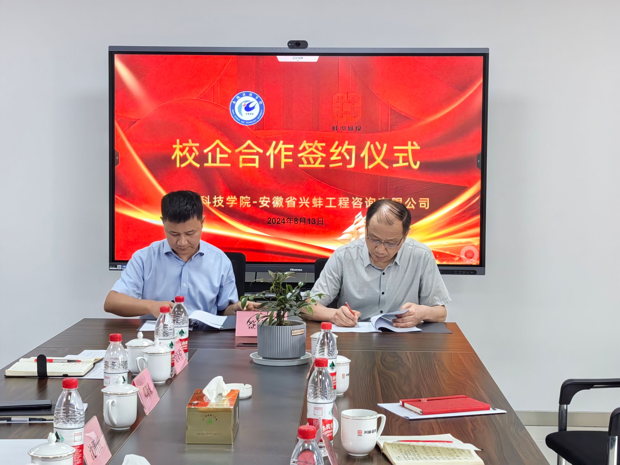 会上,双方举行了“安徽科技学院共建研究生联合培养基地”授牌仪式,并共同签订了《安徽科技学院与安徽省兴蚌工程咨询有限公司校企合作协议书》。(特约通讯员:李永鹏 摄影:李永鹏 审核:丁景良 编辑:陈晋)