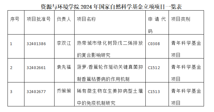 历史新高——资源与环境学院2024年度国家自然科学基金再创佳绩