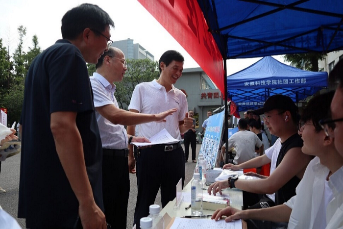 学院领导高度重视研究生迎新工作。上午7时,迎新活动正式开始,学院党委书记付光玺亲临现场指导工作,并强调要认识到本次活动的特殊意义,营造有温度、有情怀的现场氛围,引导新生“见好第一面,走好第一步”,增强形象意识,展现专业风采。他指出,各位研究生新生同学的到来为校园带来了新的活力,希望通过迎新活动,引导每位新生在安徽科技学院尽情探索,积极参与校园活动,与老师和同学们共同创造精彩的成长经历。