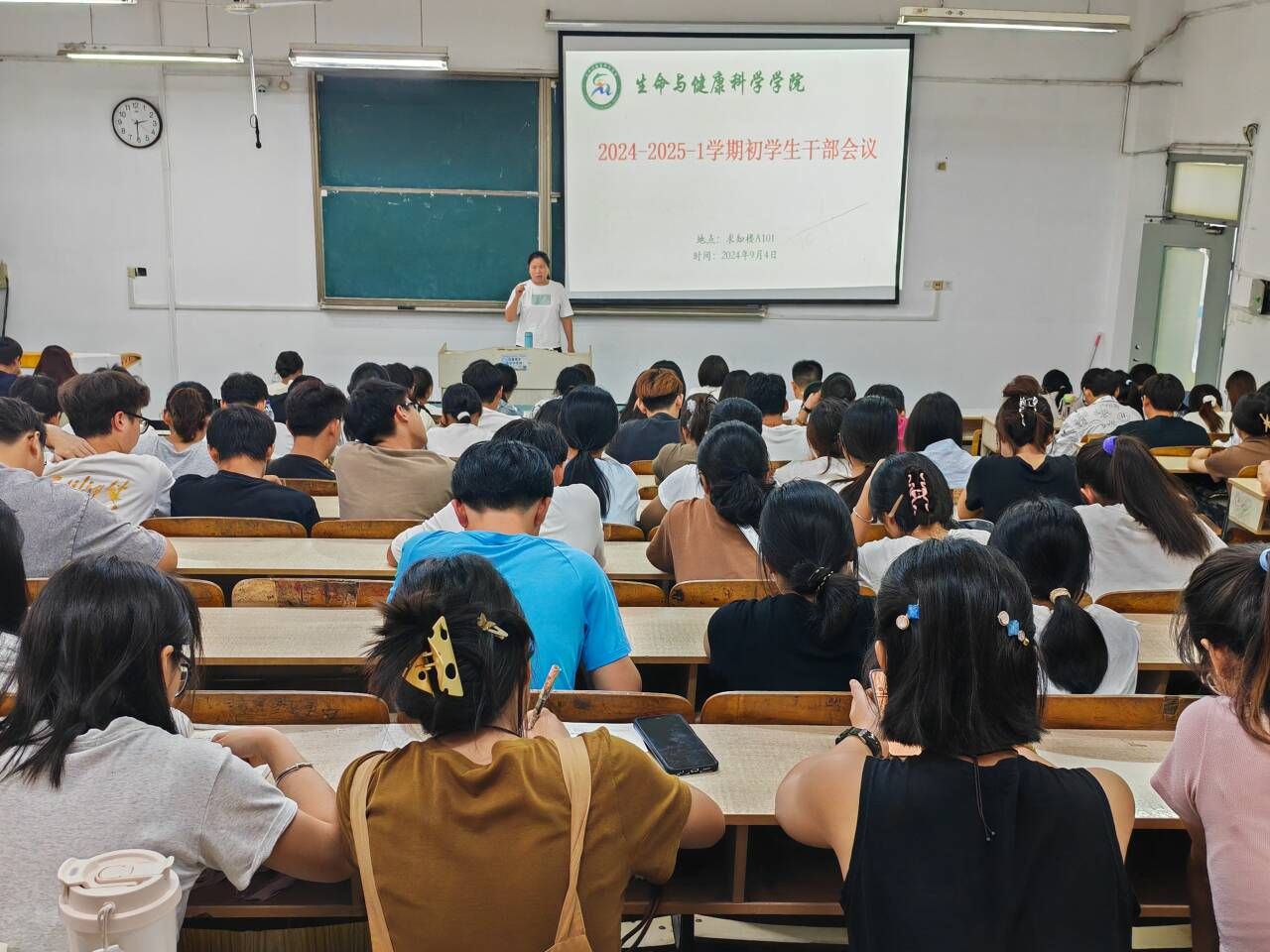 9月4日下午,生命与健康科学学院在求知楼A101教室召开期初学生干部会议。学院党委副书记彭丽萍出席并讲话,学院各班学生干部、各学生党支部代表以及学生组织成员参加会议。