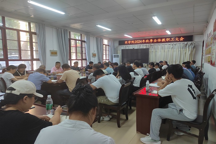 9月4日下午,农学院在学院会议室召开2024年秋季期初全体教职工大会,回顾总结暑假工作情况,部署学期初和2024年下半年重点工作。全体教职工参加会议,会议由农学院党委副书记、院长崔广荣主持。