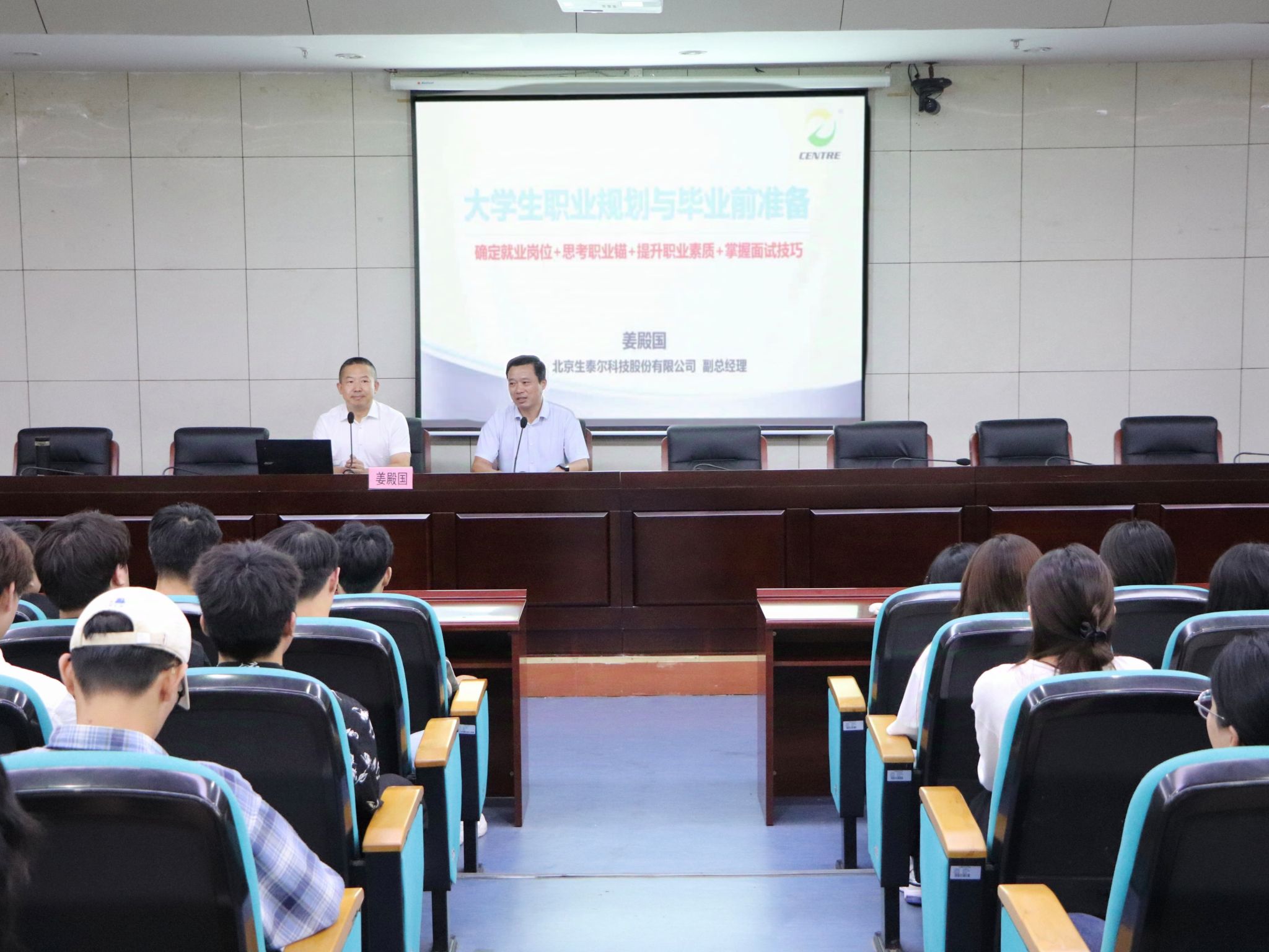 为进一步加强学生对未来就业方向和职业发展的认知,9月21日下午,动物科学学院邀请北京生泰尔股份有限公司副总经理姜殿国在新图书馆一楼报告厅作题为《大学生职业规划与毕业前准备》的就业指导专题报告。动物科学学院党委书记程斌,全体毕业班辅导员及各年级学生代表100多人参加,报告由程斌主持。