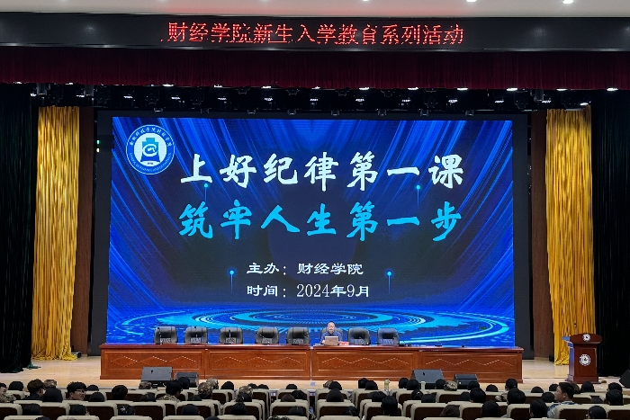 9月23日晚,财经学院在龙湖校区东辅楼报告厅开展主题为“上好纪律第一课,筑牢人生第一步”的校规校纪集中教育大会。学院党委副书记、纪委书记耿广汉主讲,全体辅导员和2024级全体新生参加。