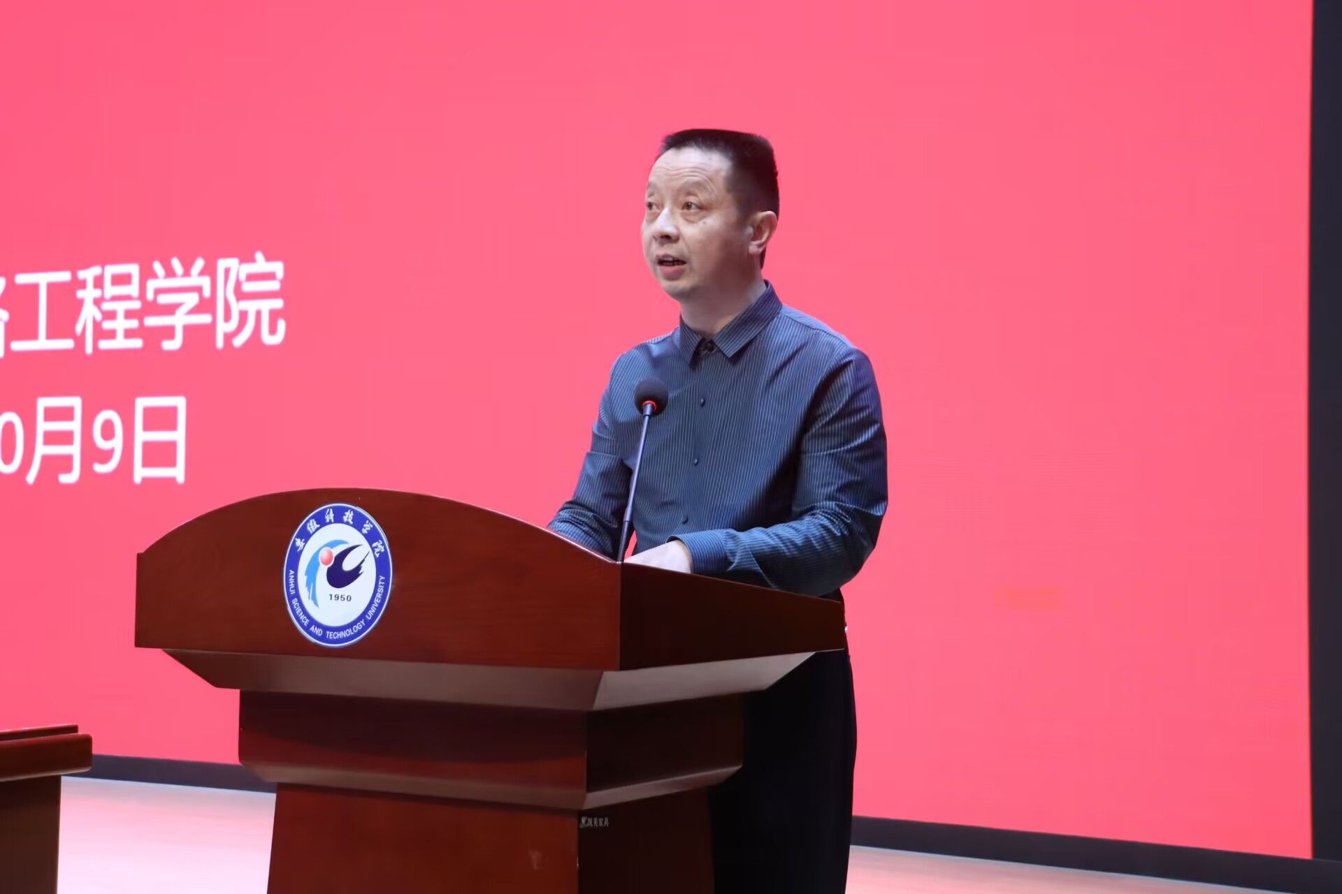 10月9日中午,信息与网络工程学院在信息中心东辅楼二楼报告厅召开2024级新生入学教育大会。学院党政领导、各系室主任、教师代表、全体辅导员及2024级全体新生参加会议。会议由学院党委副书记韦乃学主持。