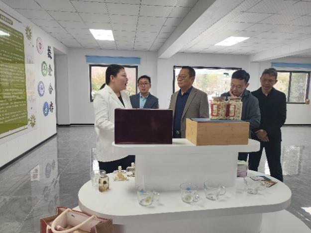 杜传来一行在企业总经理刘铭璇的带领下分别参观了安徽盛柳农业科技发展有限公司滁菊种植基地、滁菊育苗基地、滁菊加工生产基地和安亩滁菊科技小院,企业负责人刘铭璇分别就公司发展历史,滁菊的种植、生长、加工和销售情况,以及以滁菊结合文旅促乡村经济发展情况进行了介绍。