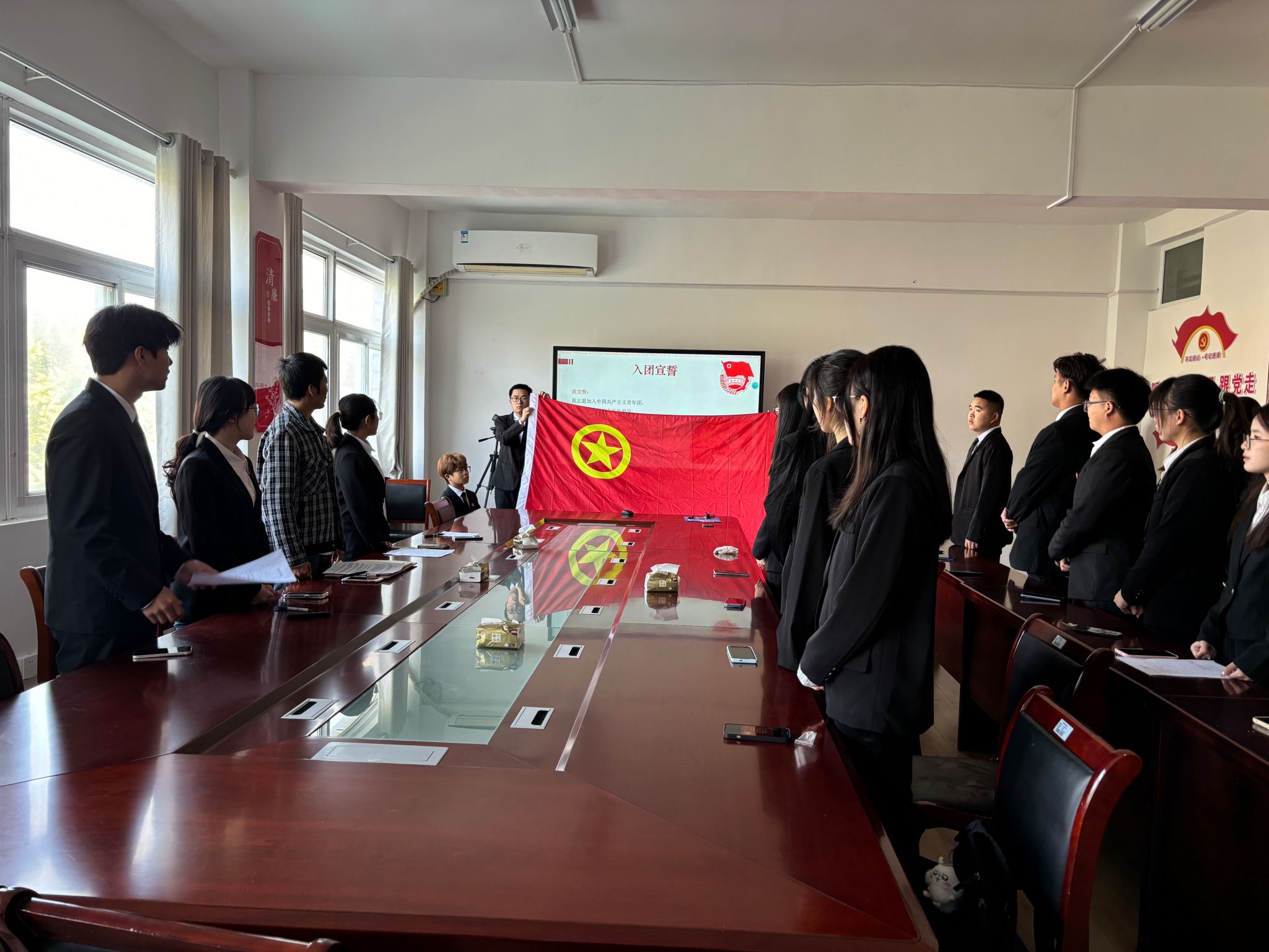 新团员入团仪式在庄严的国歌声中拉开帷幕。