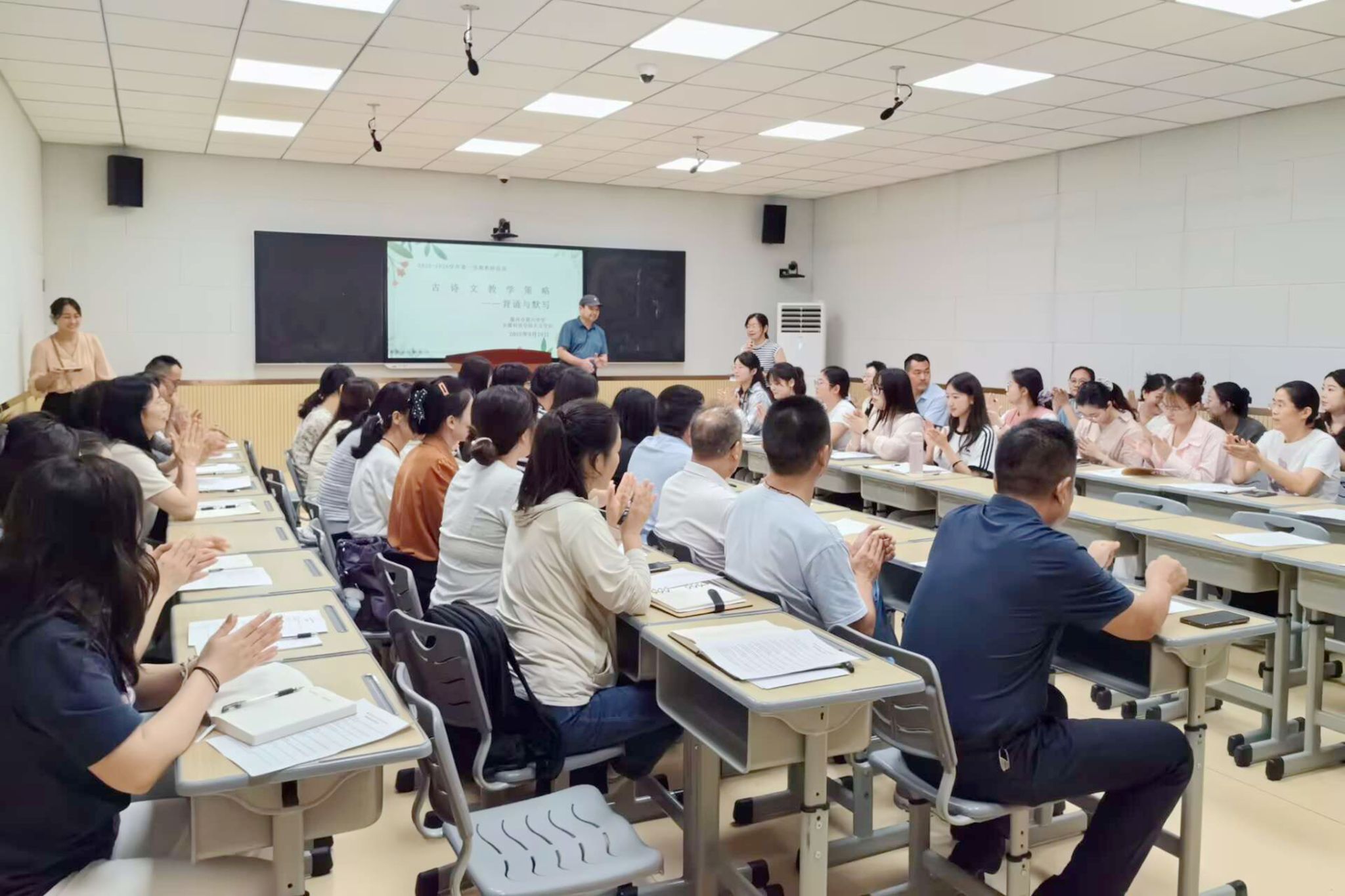 9月10日下午,人文学院中文系师生二十余人赴滁州市第六中学参与中学语文教学研讨会。会议由滁州市第六中学语文教研组组长刘尚章老师主持。