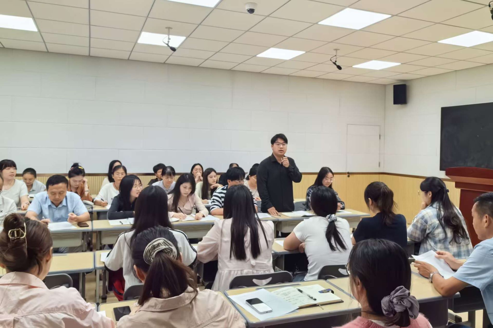 人文学院师生与中学教师集体研讨,围绕“新课标”“师范教学实践”等关键问题进行互动交流。中文系副主任胡春艳博士对本次研讨会内容进行总结,明确了汉语言文学专业师范生培养的教学优化方向与重点。