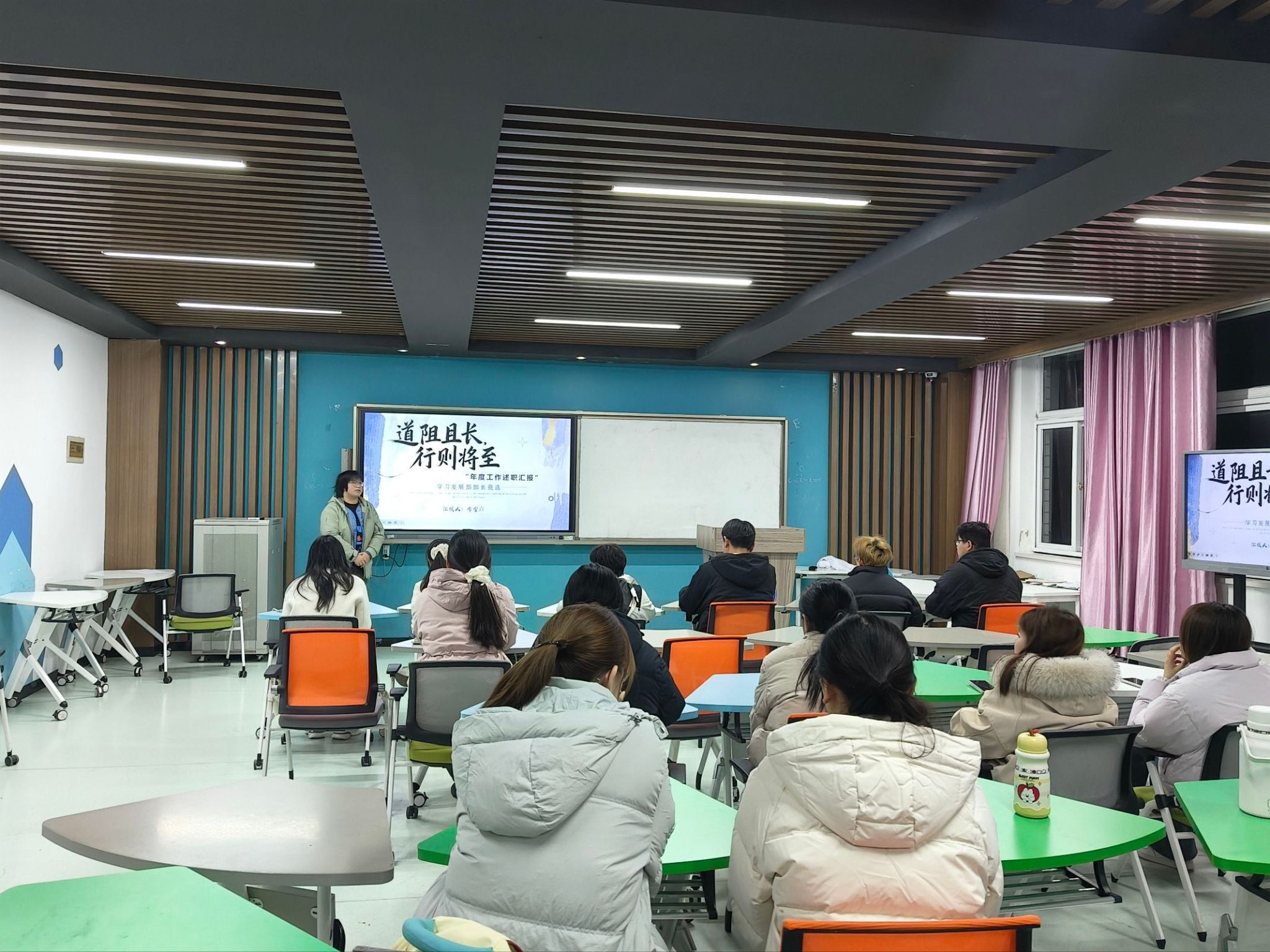 学院学生会主席团成员及各部门负责人借助PPT,围绕工作内容、职责履行、成绩亮点及不足等方面展开详细汇报。汇报中,大家结合具体案例,客观分析了工作中存在的不足,并针对性地提出了改进措施和下一步工作设想。