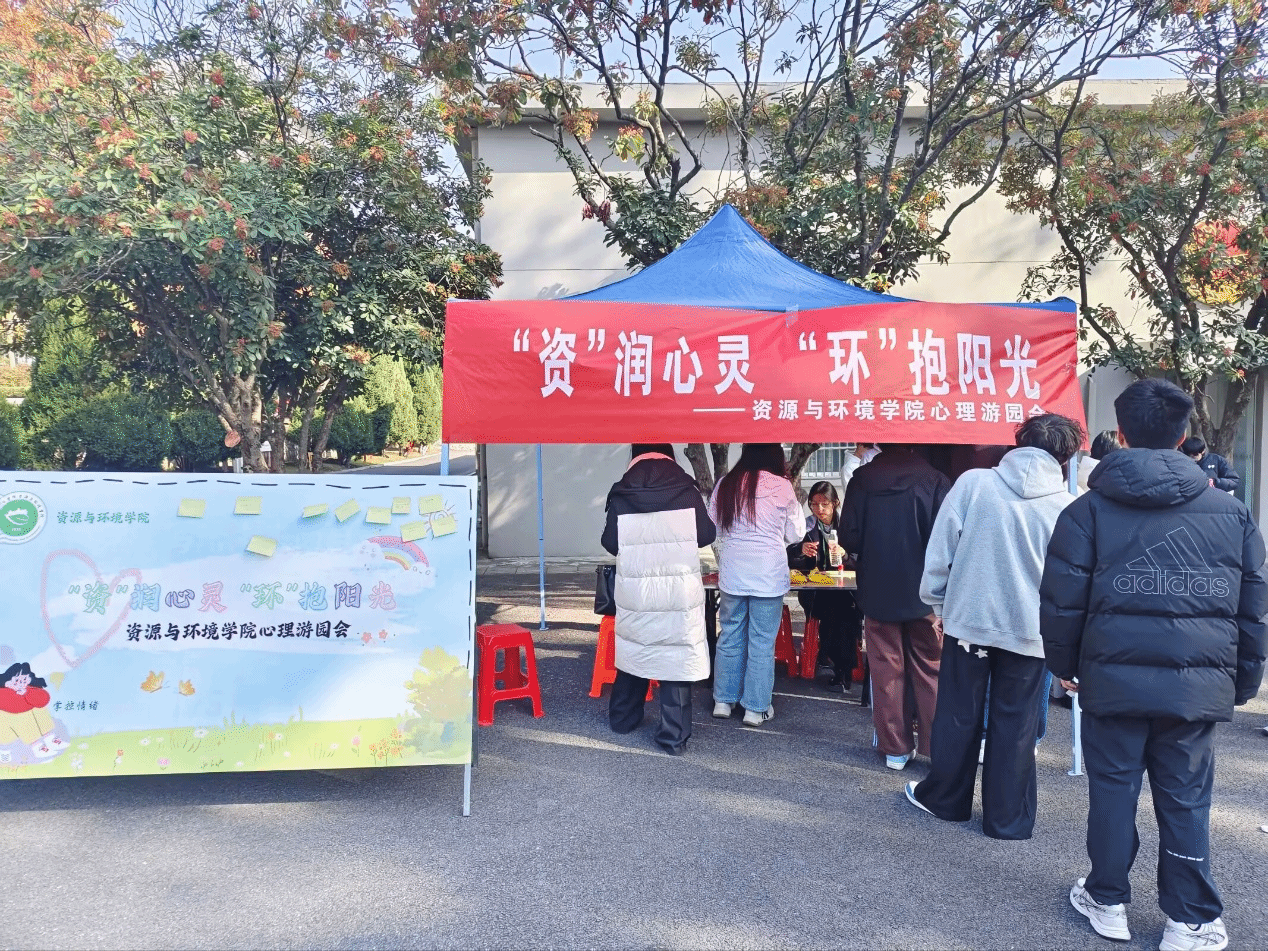 为普及心理健康知识、引导学生关注心理状态、缓解负面情绪,11月26日,资源与环境学院在东区五四广场开展“‘资’润心灵,‘环’抱阳光”主题心理游园会活动,以趣味互动搭建心灵桥梁,吸引大批同学踊跃参与,现场氛围热烈治愈。