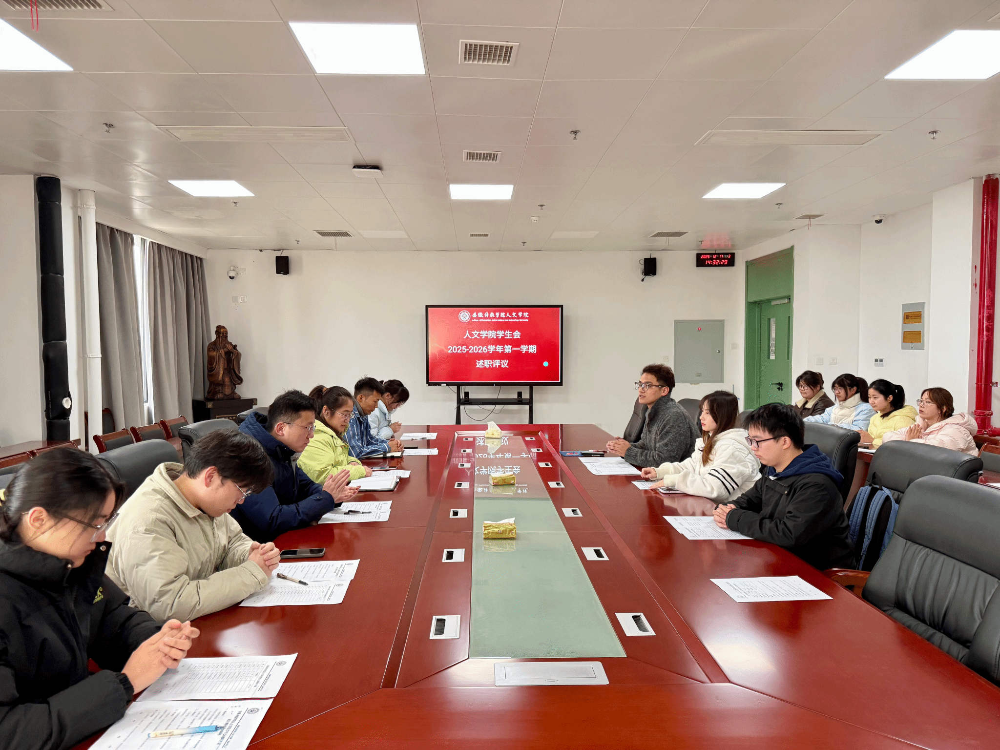 本次述职评议会议不仅全面检验了本学期学生会的工作实效,更搭建了交流学习、总结提升的平台,为有序推进下一阶段工作指明了努力方向。人文学院学生会将认真梳理总结本次述职评议反馈意见,细化完善工作规划,切实补齐工作短板,以更务实的作风、更有力的举措解决广大同学关切问题,以更饱满的热情、更创新的思路为学院发展贡献学生组织的青春力量。(特约通讯员:焦雪松 摄影:史琳婷 汪航 审核:李沙娜 张严政 编辑:李锦)