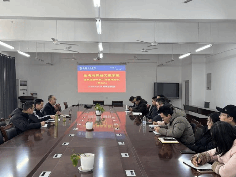 1月13日下午,信息与网络工程学院在尚行楼B418会议室召开2026年度国家基金项目申报工作第三次推进会议,重点部署申报书的优化提质工作。2026年度全体申报人员参加会议,会议由学院副院长何恩节主持。