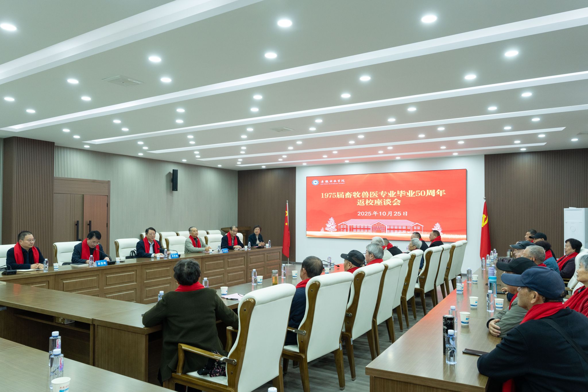 自古贤能恋旧土,从来才俊爱家园。10月25日上午,1975届畜牧兽医专业校友在图书馆B座二楼多功能厅举行毕业50周年座谈会,校党委副书记、院长李升和,滁州学院原党委书记余在岁出席并致辞,校党委委员、副院长赵伟峰主持座谈会。