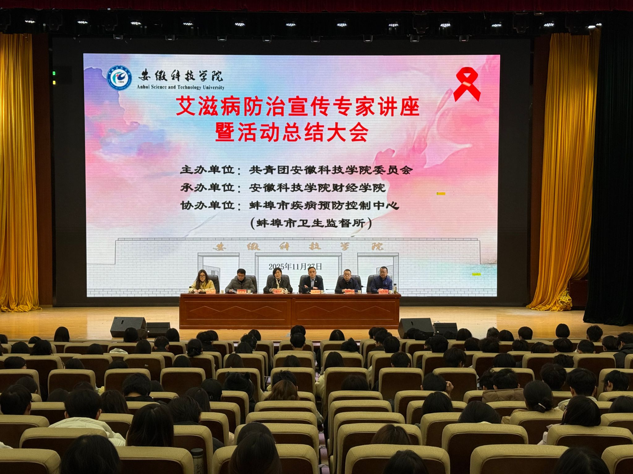 11月26日,校团委、财经学院党委负责人与蚌埠市疾控中心领导共同出席了专家讲座暨防艾总结大会。蚌埠市疾病预防控制中心性病艾滋病防治科主管医师马凤昌作了《友爱青春 无艾校园》主题讲座,通过案例分析、数据解读,为师生详解防艾知识要点。