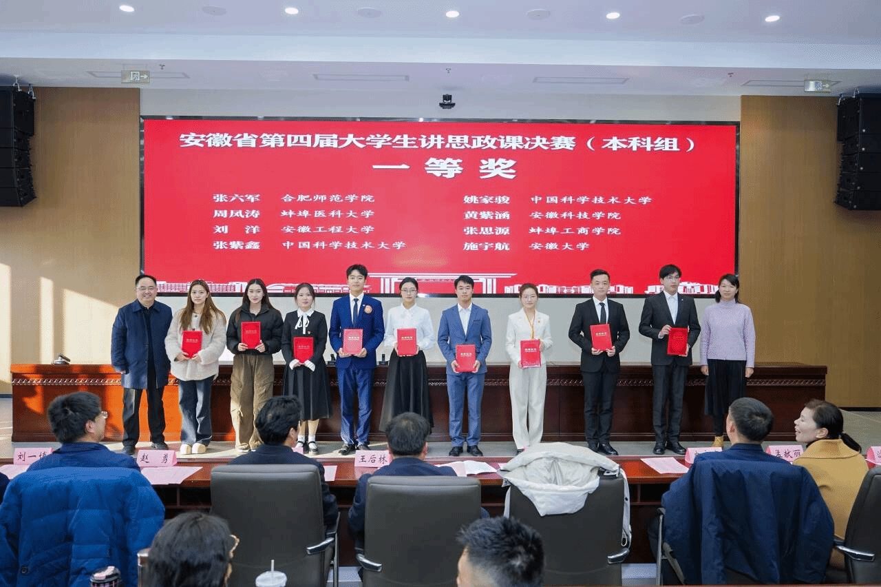 12月27日,安徽省第四届大学生讲思政课比赛决赛在安徽师范大学圆满落幕。大赛以“逐梦新时代 奋进新征程”为主题,来自皖北、皖中、皖南三个片区赛,经推荐的全省25所高校的45支参赛队伍参加了本次决赛。我校3支队伍在皖北片区赛中脱颖而出,入围决赛。他们凭借扎实的理论、生动的展示和深刻的内涵,在决赛中荣获一等奖、二等奖、三等奖各一项,充分展示了学校思想政治理论课教学改革的成果和安科学子的青春风采。