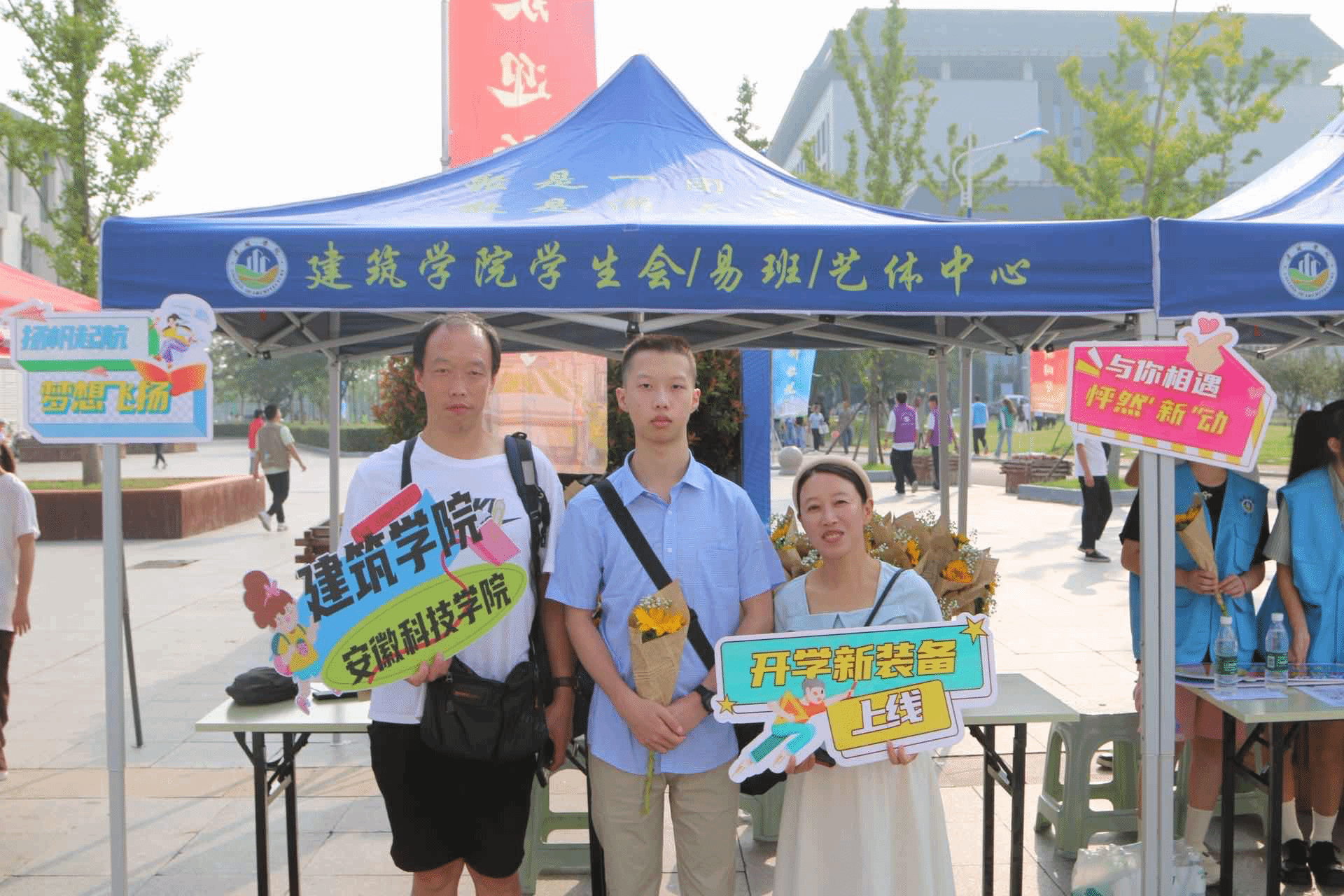 校园里,亲人陪伴而来,行李载满牵挂。打卡点前,萌新和家人在安科留下第一张合照,眼神里满是对人生新旅程的期待。