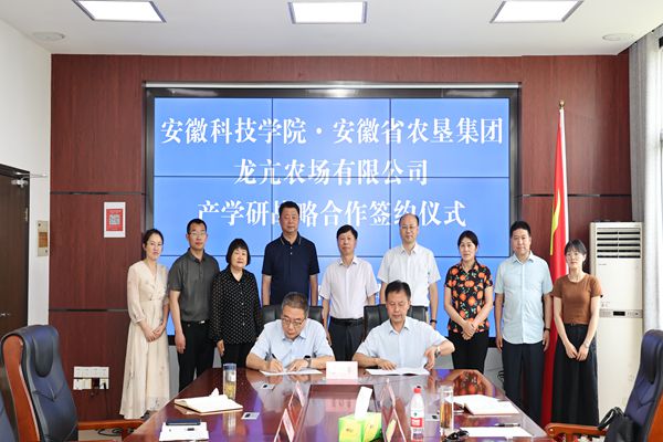 5月22日上午,我校与安徽省农垦集团龙亢农场有限公司产学研合作协议正式签约。校党委书记时伟,党委委员、副院长王孝义,科研处处长陈丰,民进蚌埠市委会副主委、安徽科技学院支部主委张菊,龙亢农场党委书记、董事长张平,总经理翟程等出席仪式。