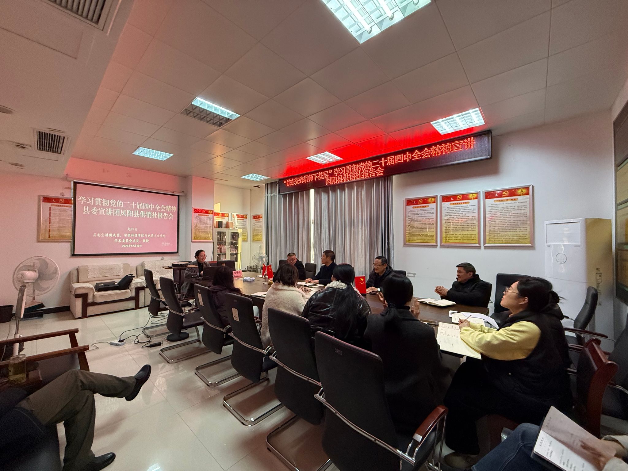 近日,我校与凤阳县委宣传部联合开展“举旗帜·送理论”学习贯彻党的二十届四中全会精神宣讲活动。我校宣讲团成员、马克思主义学院8名骨干教师应邀深入全县机关、社区、学校等单位开展系列宣讲。