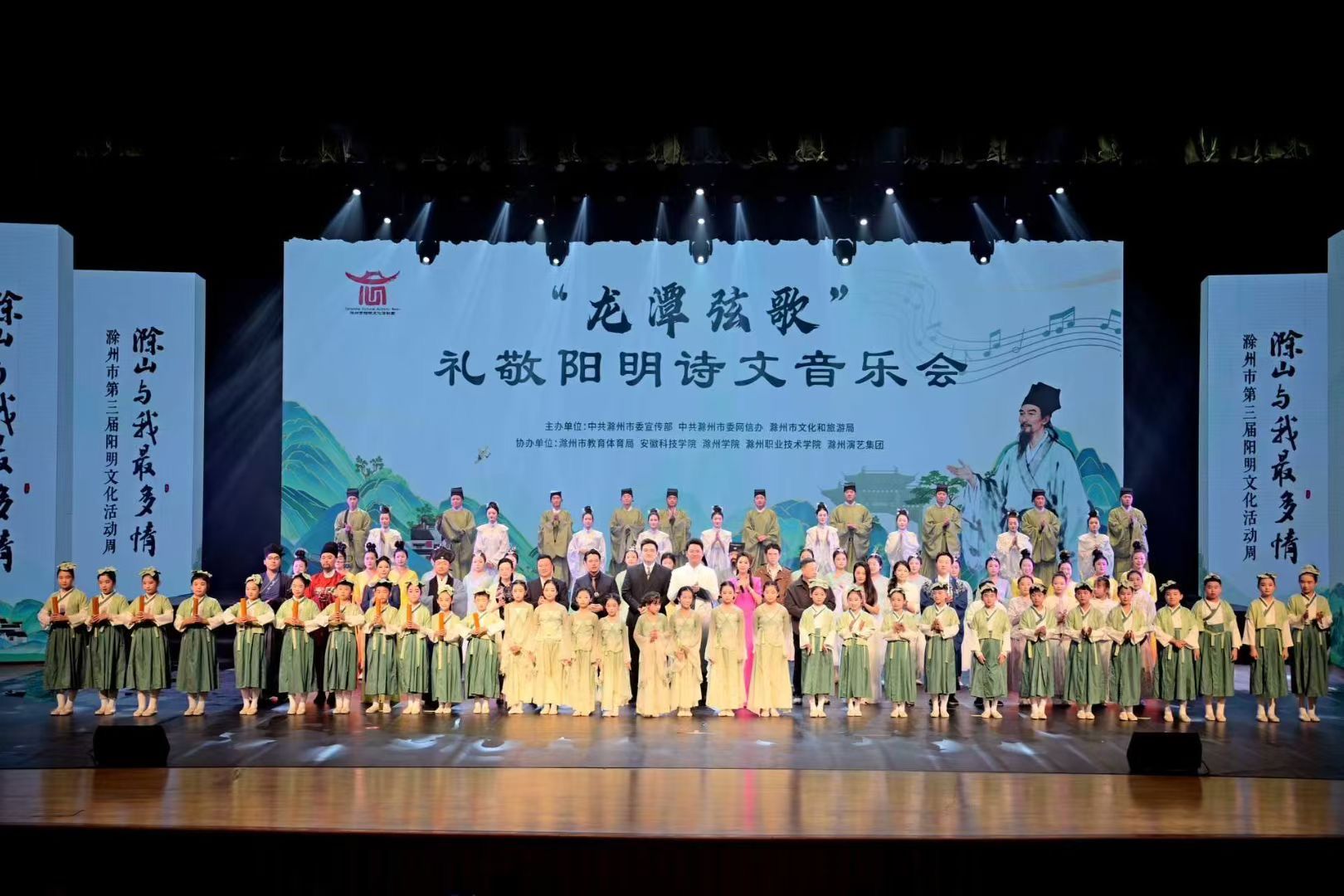 11月23日晚,滁州大剧院灯火璀璨,滁州市第三届“阳明文化活动周”核心活动“龙潭弦歌·礼敬阳明诗文音乐会”如期举行。由人文学院倾情演绎的情景剧《此心光明:琅琊山下的跨世对话》精彩亮相,以沉浸式叙事重现王阳明在滁讲学论道的千古佳话,为观众送上诗与远方的浪漫。