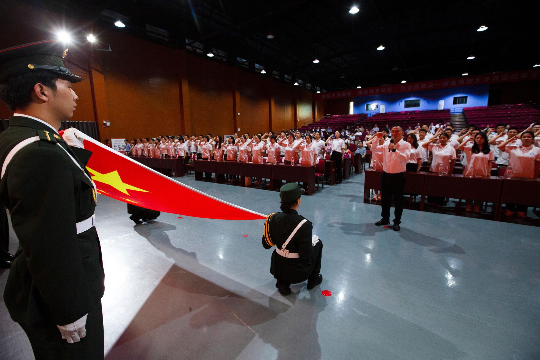 会上,曹付忠宣读了2024年以来学校在师德、教学、人才、科研和管理等方面获得省级及以上奖励人员名单。方鸣带领新进教师进行了入职宣誓。
