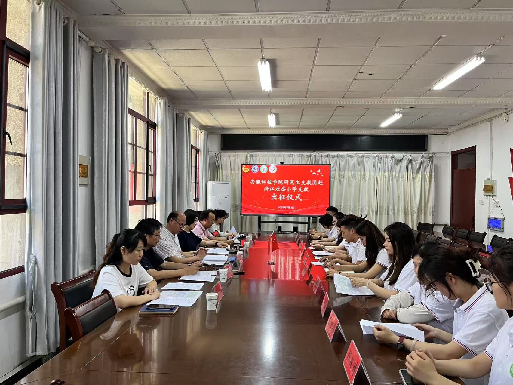 7月3日上午,我校在农学院会议室举行研究生支教团赴浙江欢岙小学支教出征仪式。校党委委员、副院长王孝义出席仪式,校团委书记张聪、研究生处老师和研究生支教团成员代表共同参加了此次仪式,仪式由党委研究生工作部部长张春雨主持。