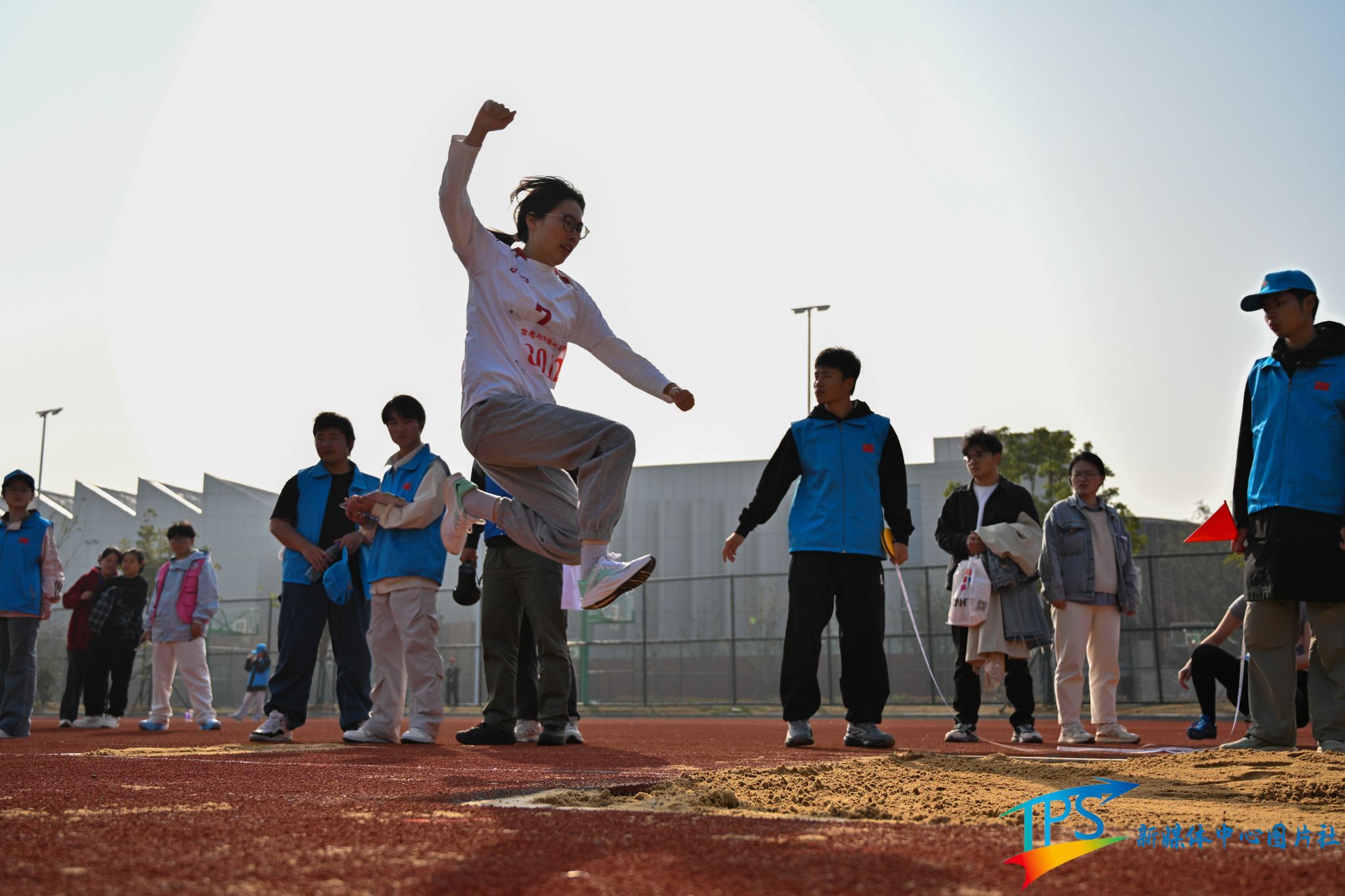 志愿者是赛场边的守护者,用行动传递温暖。他们是幕后最坚韧的支柱。赛道旁,他们提前到场清理跑道,平整沙坑;观众席旁,他们耐心维持现场秩序。他们的身影像一束束暖光,默默照亮赛场的每一个角落。