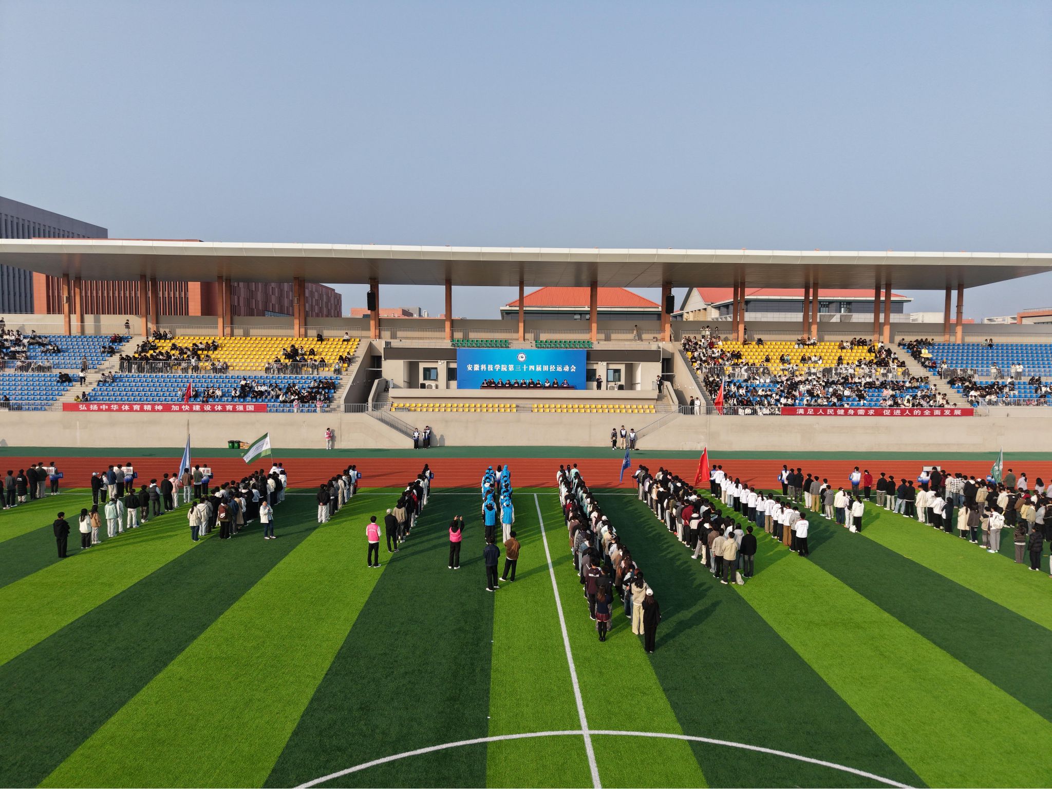 燃动金秋,竞绽芳华。经过初赛和预赛的激烈角逐,11月2日上午,我校第三十四届田径运动会决赛在滁州校区田径运动场顺利开幕。党委副书记、院长李升和,党委副书记曹付忠,党委委员、副院长、校体育运动委员会主任赵伟峰,党委委员、副院长王玉和出席开幕式。全体运动员、教练员、领队及全体裁判员和大会工作人员参加开幕式。开幕式由王玉和主持。