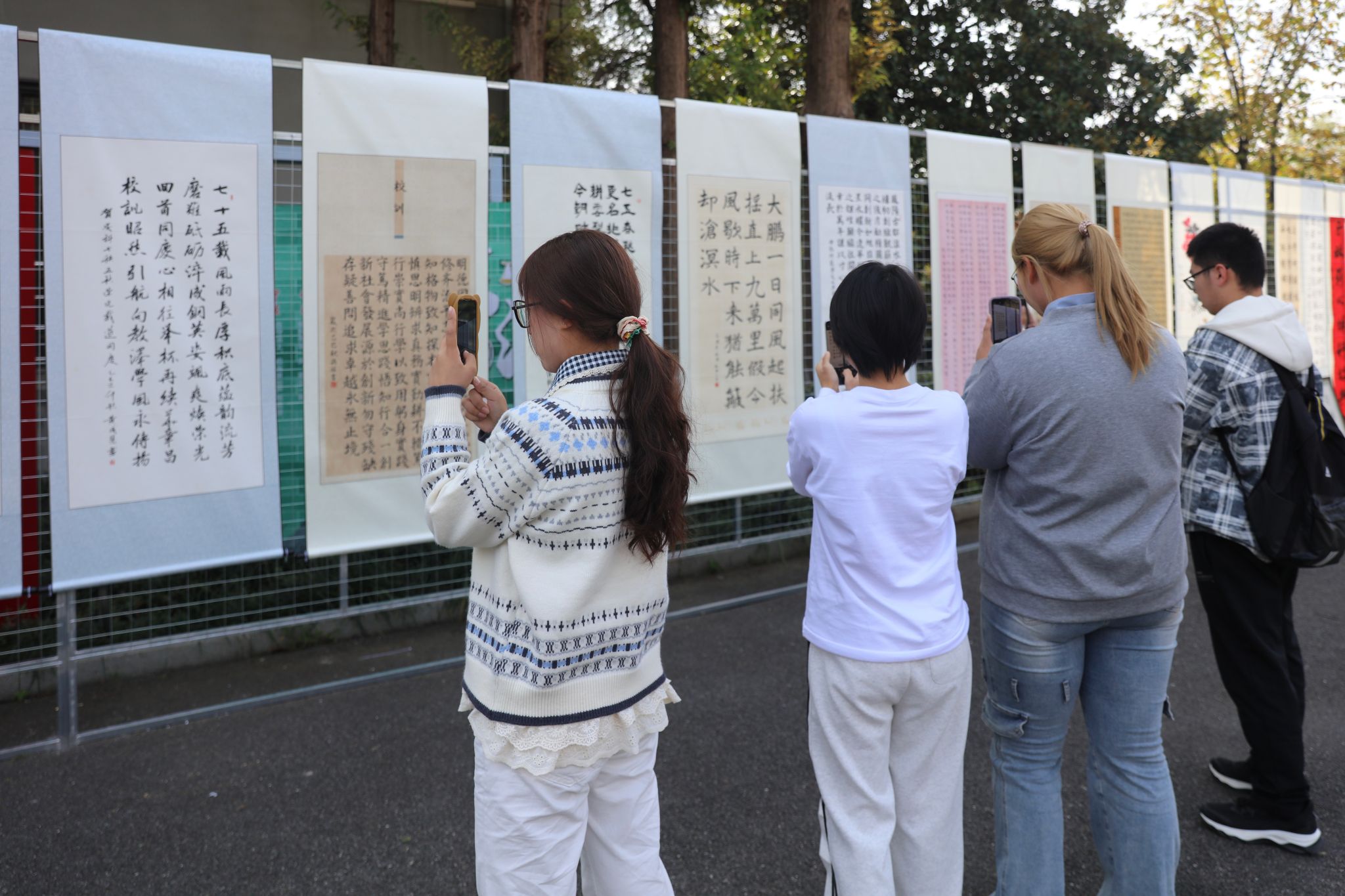为丰富校园文化生活,厚植师生爱校情怀,11月3日至4日,我校在凤阳校区五四广场举办建校75周年“情系安科 笔颂华章”主题书画作品展。
